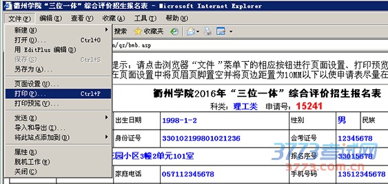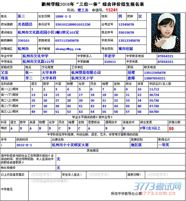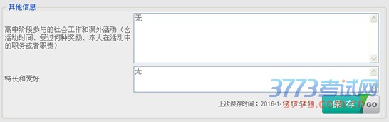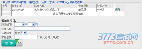 2、注册 注册成功3、登录(如忘记密码,请联系我们找回密码。)4、填写信息 4.1填写基本信息填写完以上项目,请单击保存,确认出现保存时间。如需修改再次单击保存即可。 4.2上传照片 4.3填写家庭信息填写完以上项目,请单击保存,确认出现保存时间。如需修改再次单击保存即可。 4.4填写高中成绩信息 填写完以上项目,请单击保存,确认出现保存时间。如需修改再次单击保存即可。 4.5填写会考成绩信息填写完以上项目,请单击保存,确认出现保存时间。如需修改再次单击保存即可。 4.6添加获奖信息填写完以上项目,请单击增加即可,如需修改请先删除再次增加即可。 4.7填写其他信息填写完以上项目,请单击保存,确认出现保存时间。如需修改再次单击保存即可。 4.8点击“预览报名表”查看信息是否正确5、生成报名表 5.1如果您的报名表信息尚未填写完毕,下方将会出现如下提示: 5.2如果您的报名信息已填写完毕,则提交按钮变亮,可点击,如下图所示: 5.3报名表提交后才能打印,如下图所示: 5.4点击打印报名表后,将弹出新窗口,出现报名表信息,请参考网页提示进行打印操作。重要提示:打印后,请所在中学签署意见并签字盖章,然后自己手写签字后再继续进行以下操作。6.EMS邮寄材料邮寄后,请按照邮政回执填写您的EMS单号并提交。7.缴纳报名费缴费后,请填写您汇款单上的汇款单号提交。 8、登录查看状态和审核结果相关的审核结果,缴费结果,面试及考试成绩都将按时间在本页面发布,请届时查看。