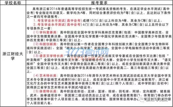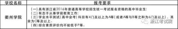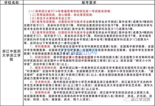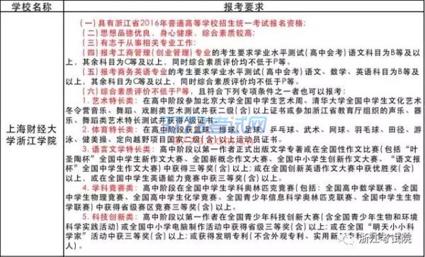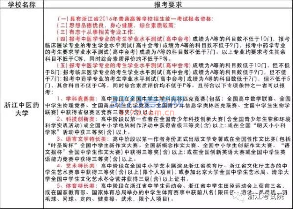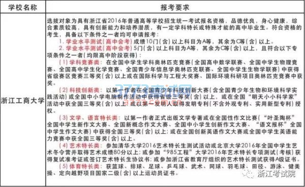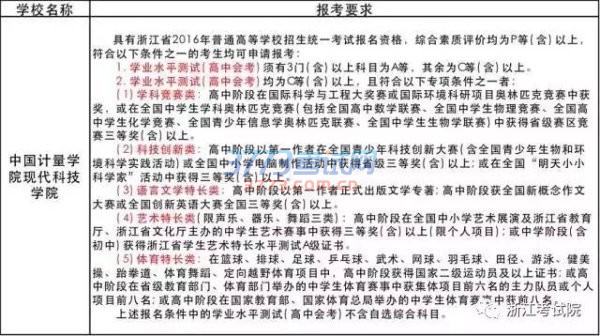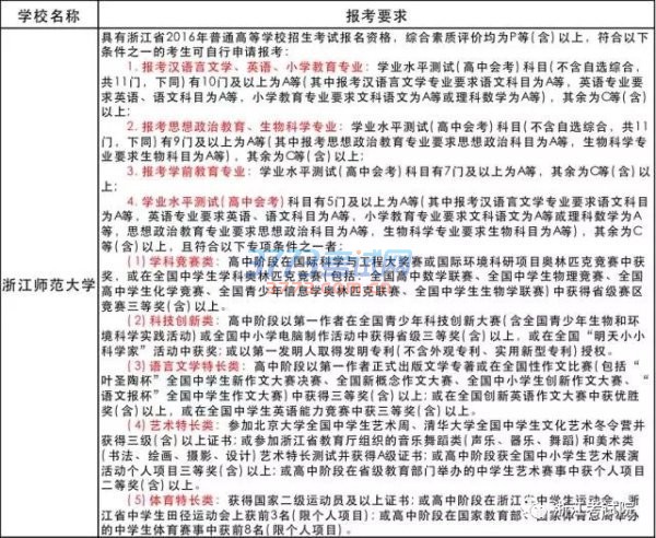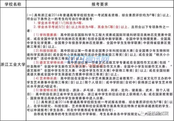 中国科学技术大学:在学科奥林匹克竞赛中优胜或在数学、物理、化学等学科方向有突出表现的浙江省理科高中毕业生;参加浙江省2016年高考一类科目组的报名和考试,高考成绩应达到浙江本科一批录取控制分数线。