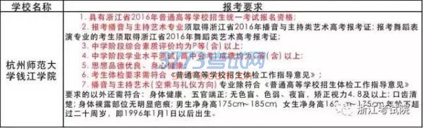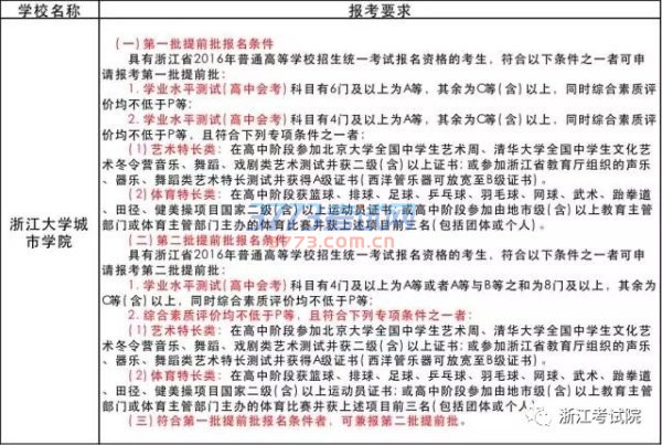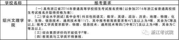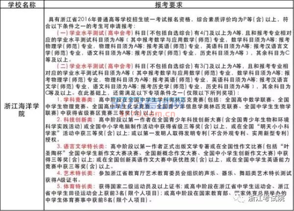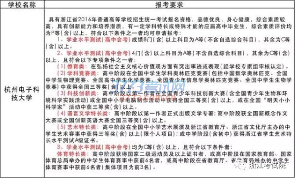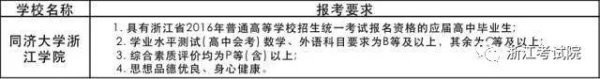 4、对于报名参加我校综合评价入学测试且入围的考生,必须参加2016年浙江省高考一类科目组考试,高考投档成绩须达到浙江省本科第一批次最低录取分数线及以上。