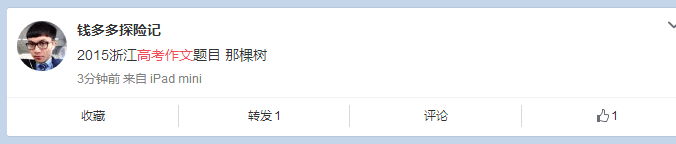据网友“钱多多探险记”爆料,2015年浙江高考作文题目为:那棵树。 目前正在核实中