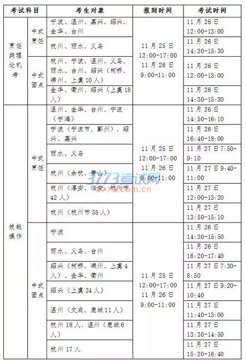 本次考试时间为2016年11月25至26日,考点设在浙江旅游职业学院,具体报到时间和考试日程安排请看下表: