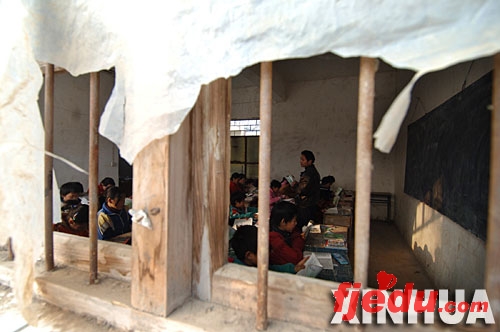 资料图片:2006年12月13日,安徽省泗县大杨乡三田小学二年级学生在租用的农舍上课。