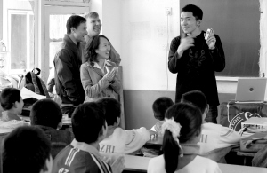 在讲课的过程中,“老师”们还会给提问的学生们小礼物作为奖励,一个女同学接过印有清华大学标志的书签时,流利地说了声“ThankYou!”,“VeryGood.”分发礼品的奥地利留学生欣喜地竖起大拇指。两小时后,全部教学活动结束。孩子们唱起儿歌向“老师”告别。参与此次授课的黄文龙说,这是导师布置的一次作业,目的是锻炼大家的组织协调能力,他们也想借此做一些有意义的活动。(记者赵颖)