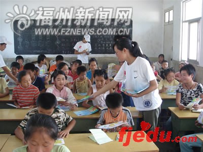 我们上课的时候,班里的孩子基本都控制在45个左右。我们支教的内容主要包括基础绘画、奥运、中国地理、基础英语、沟通与口才、古诗背诵、球类体育等,并向孩子们介绍我们各自家乡福建、江西、安徽、河北、江苏、河南的一些特色文化和人文景观,还向孩子们讲述我们的成长故事,激发他们走出山村的欲望。另外,我们每天都会抽出一节课,带孩子们一起做心理团体训练,同时穿插丢手绢、摸瞎等趣味性游戏。一起唱歌的时候,听到孩子们最经常唱的就是张韶涵的《隐形的翅膀》,每次我们都能强烈地感受到,这些孩子内心涌动的那种向外飞的欲望。