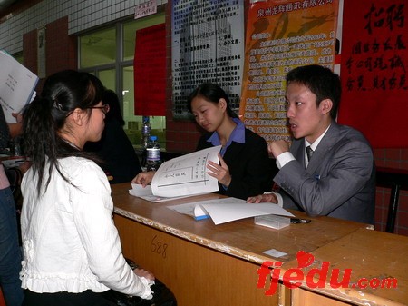 由泉州理工学院就业指导中心主办,好工作人才网、校创业协会协办的泉州理工学院2008届毕业生供需见面会11月13日上午在泉州理工学院举行。近120家用人单位前来招贤纳士,其中不乏沃尔玛、麦德龙、中国联通、泉州酒店、中国人寿、中企动力、德尔惠等知名企业,本次招聘会共提供1320个工作岗位,吸引了校内外毕业生数千名前来求职。泉州理工学院就业指导中心及各系负责就业、实习的老师也借此良机,与各单位洽谈校企合作事宜。