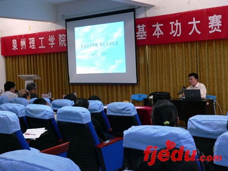 泉州理工学院首届教学基本功大赛11月14日下午在校学术报告厅举行。本次大赛由校教务处主办,旨在加强教师队伍建设,提高教师的师德和业务水平,全面提高教育教学质量,鼓励广大教师进行教学创新,推动素质教育的深入发展。学院党委副书记毛伟雄、教务处处长朱国清及各系主任组成的专家委员会担任此次比赛评委。