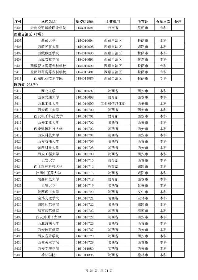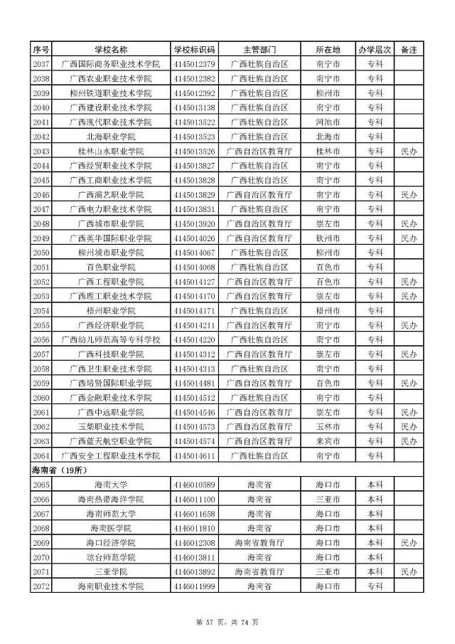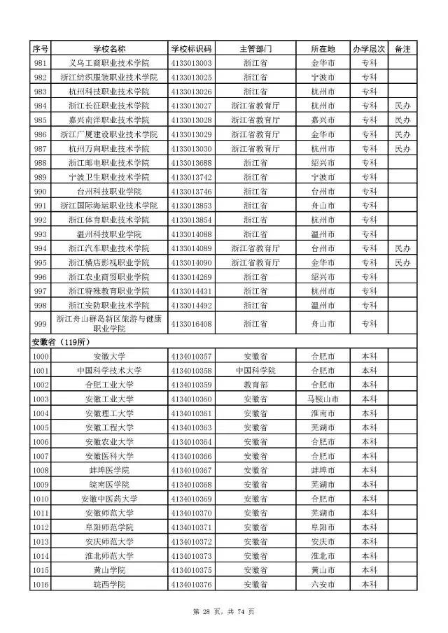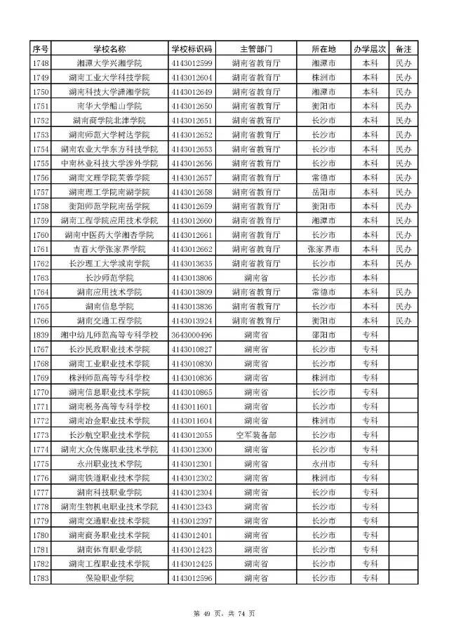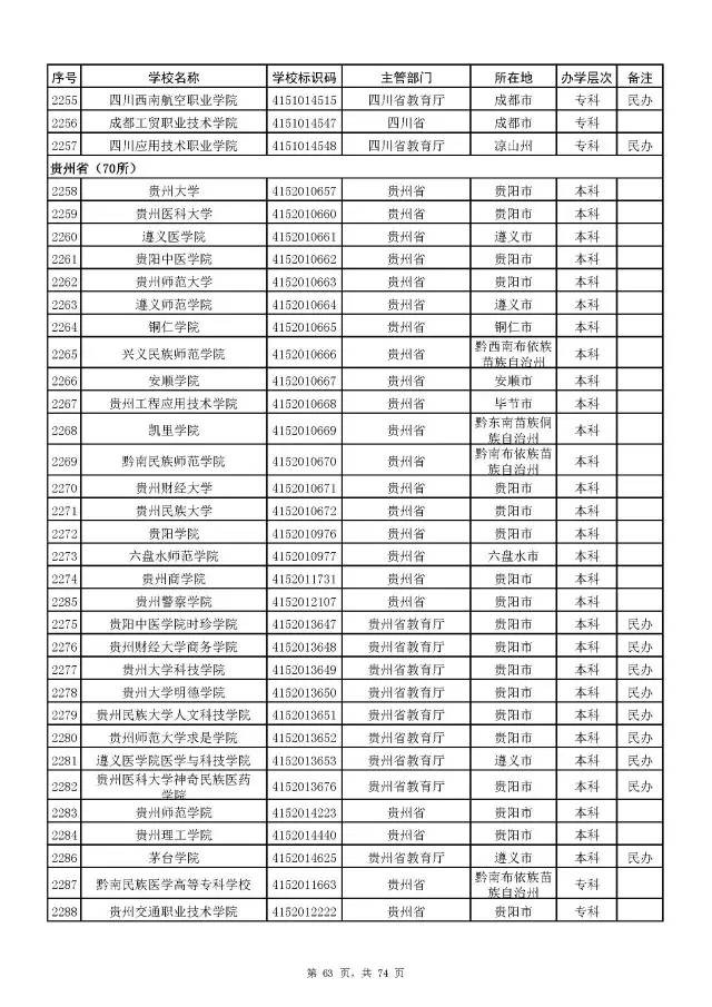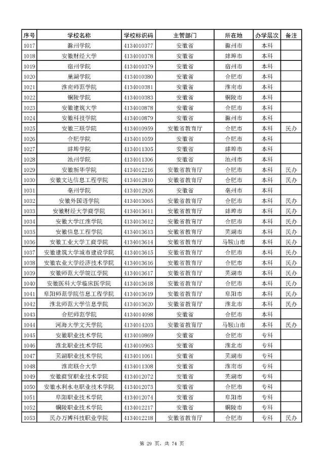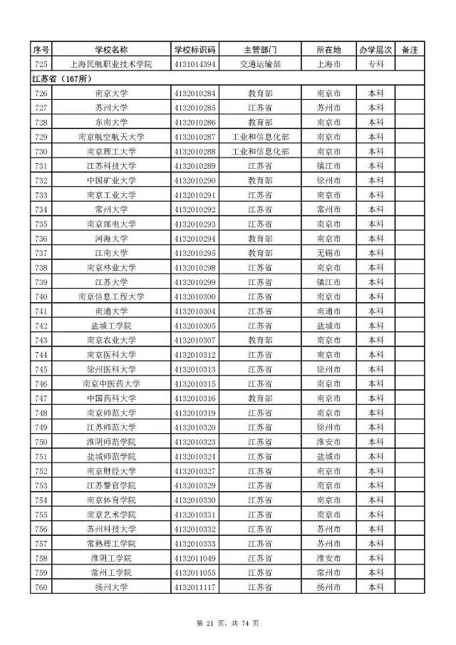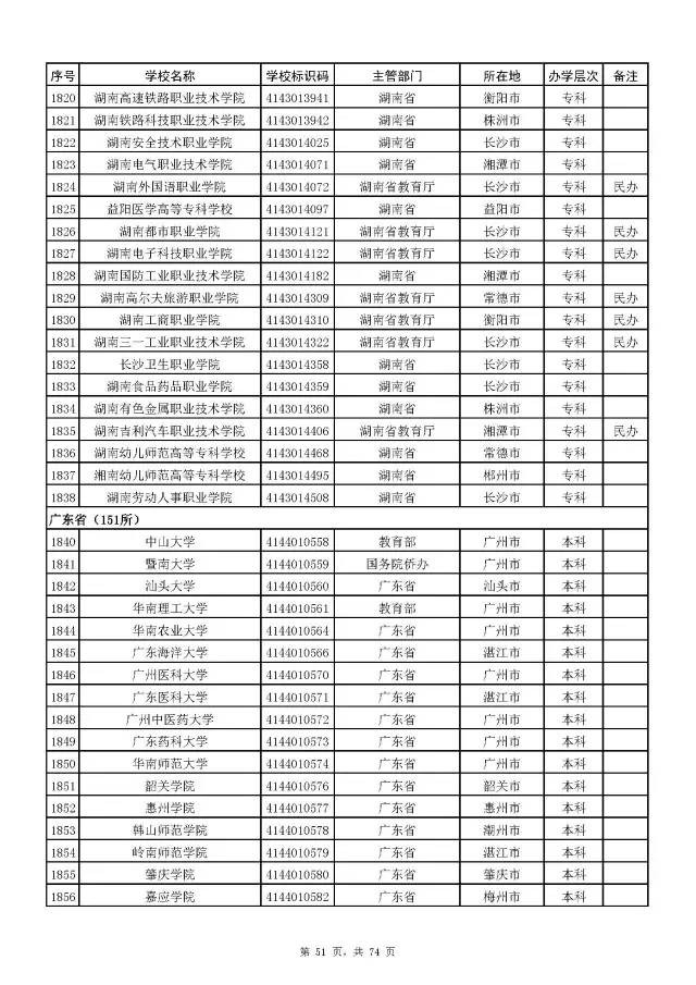 全国普通高校名单(截至2017年5月31日