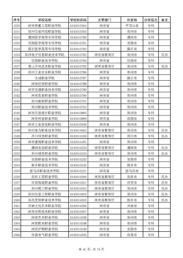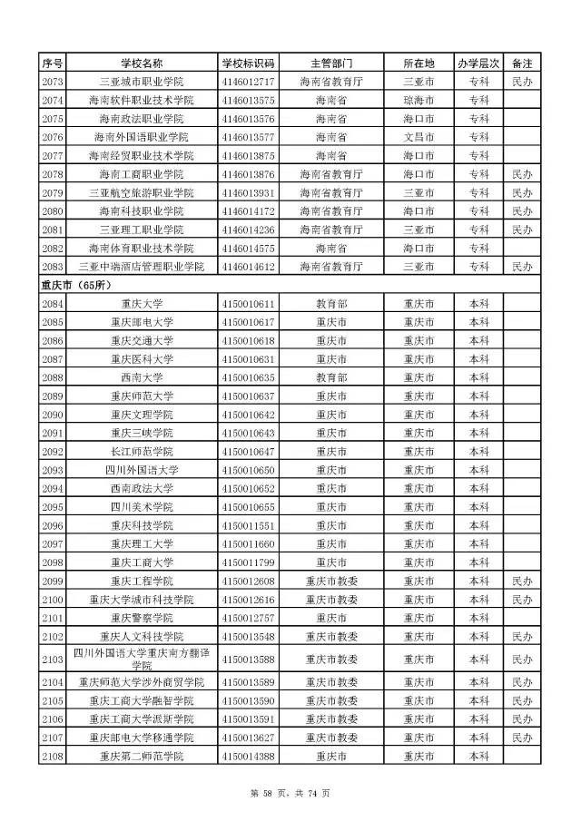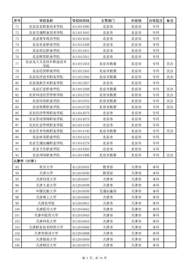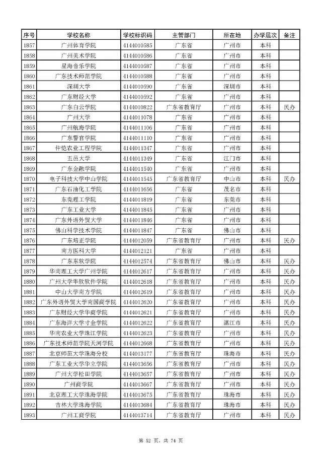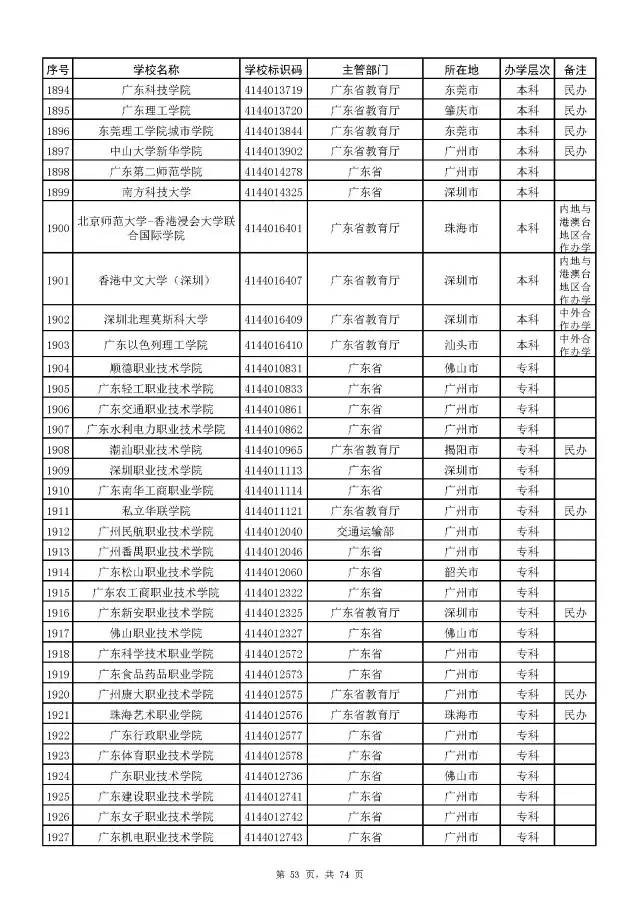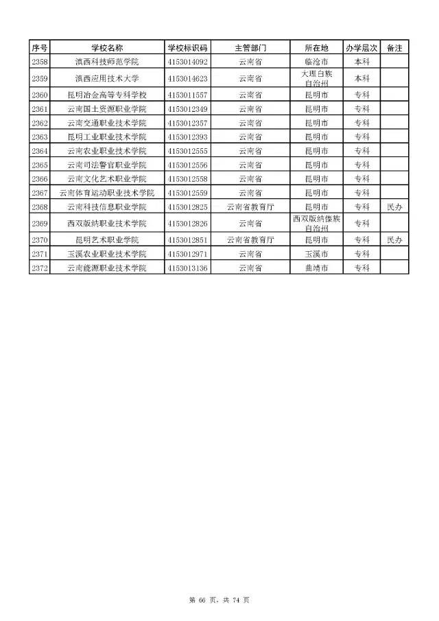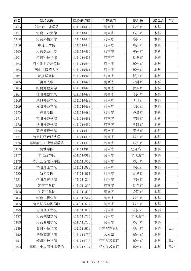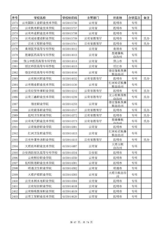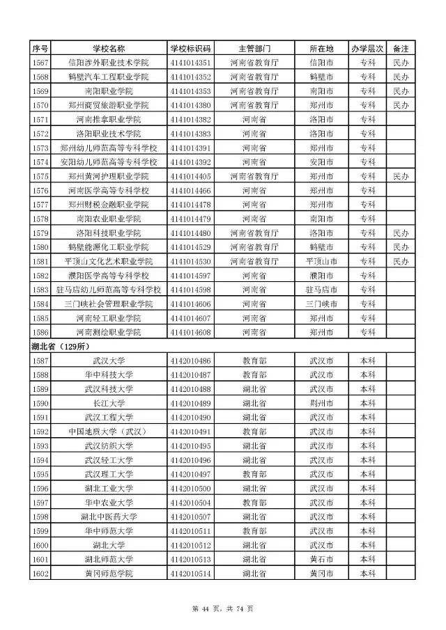 全国普通高校名单(截至2017年5月31日