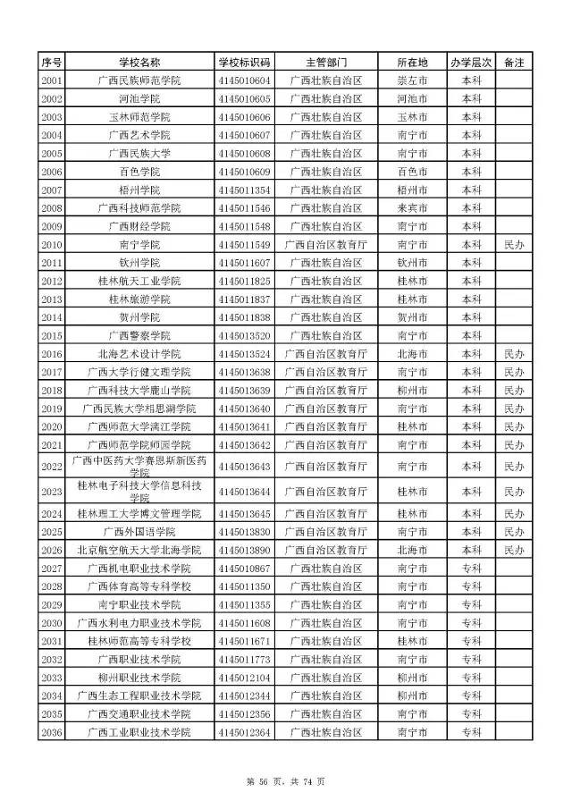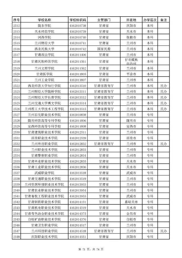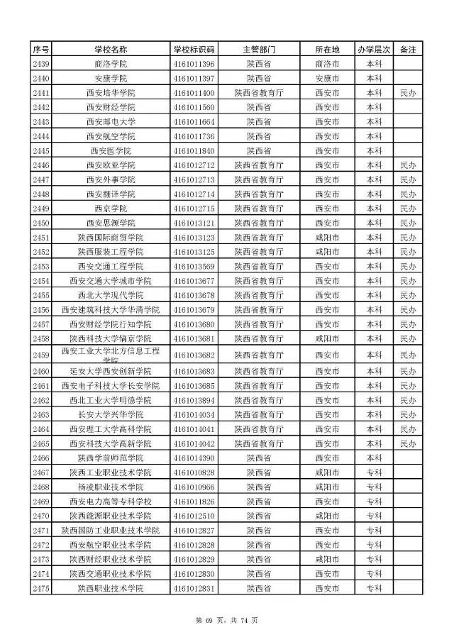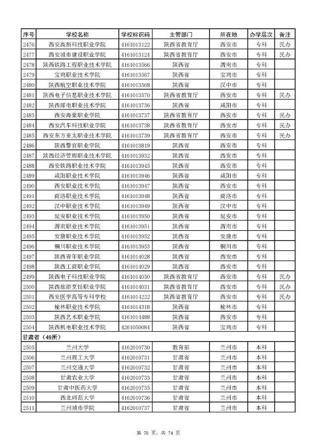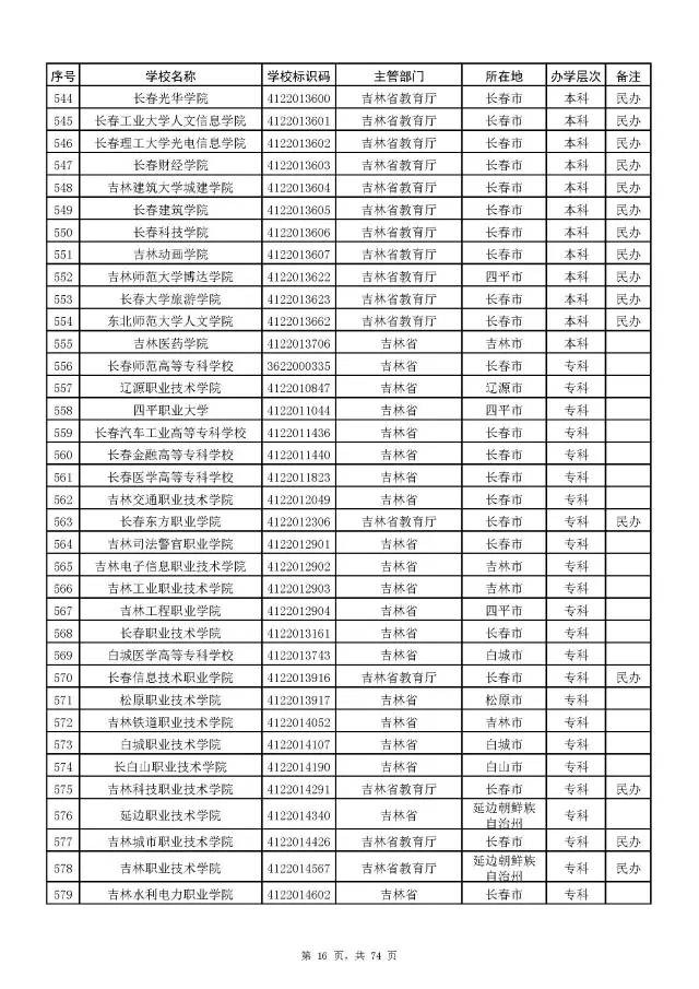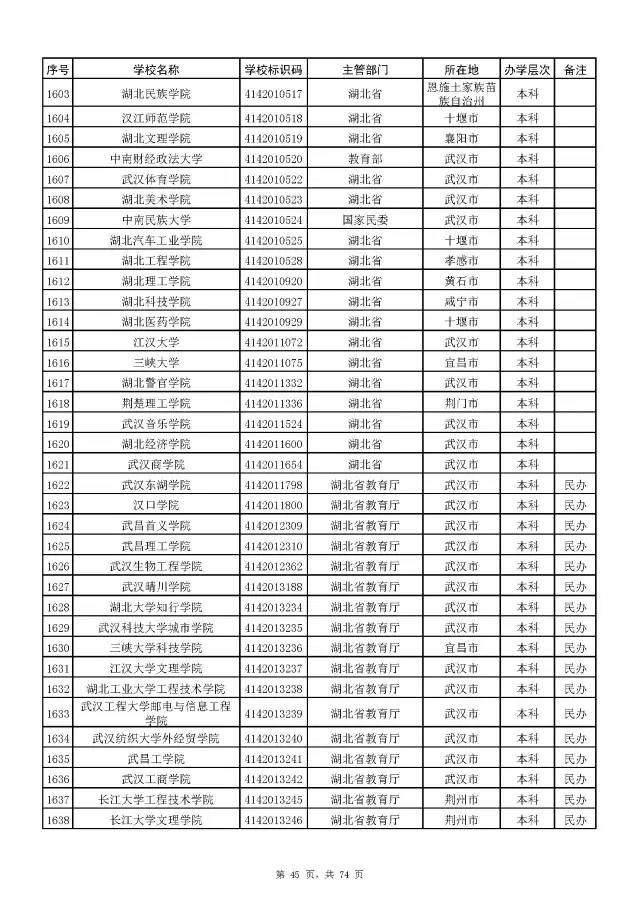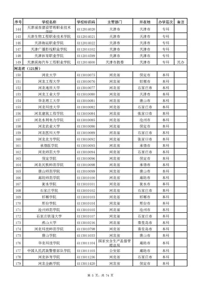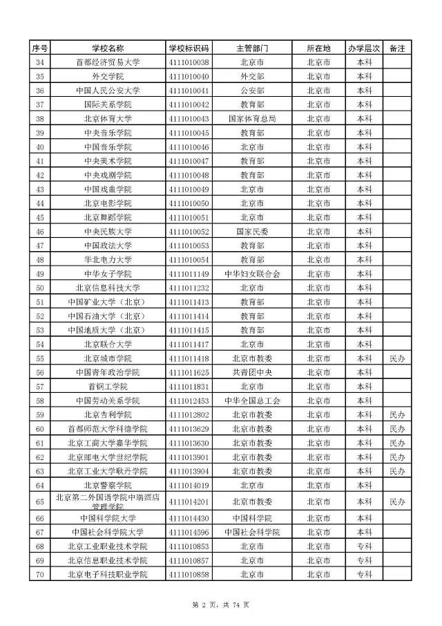 全国普通高校名单(截至2017年5月31日