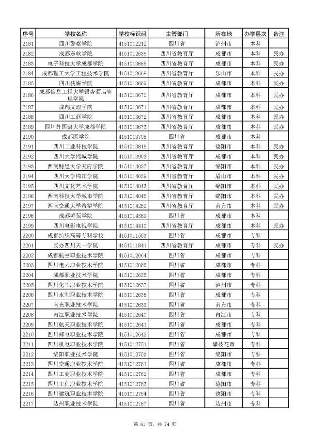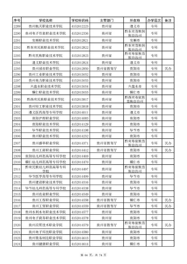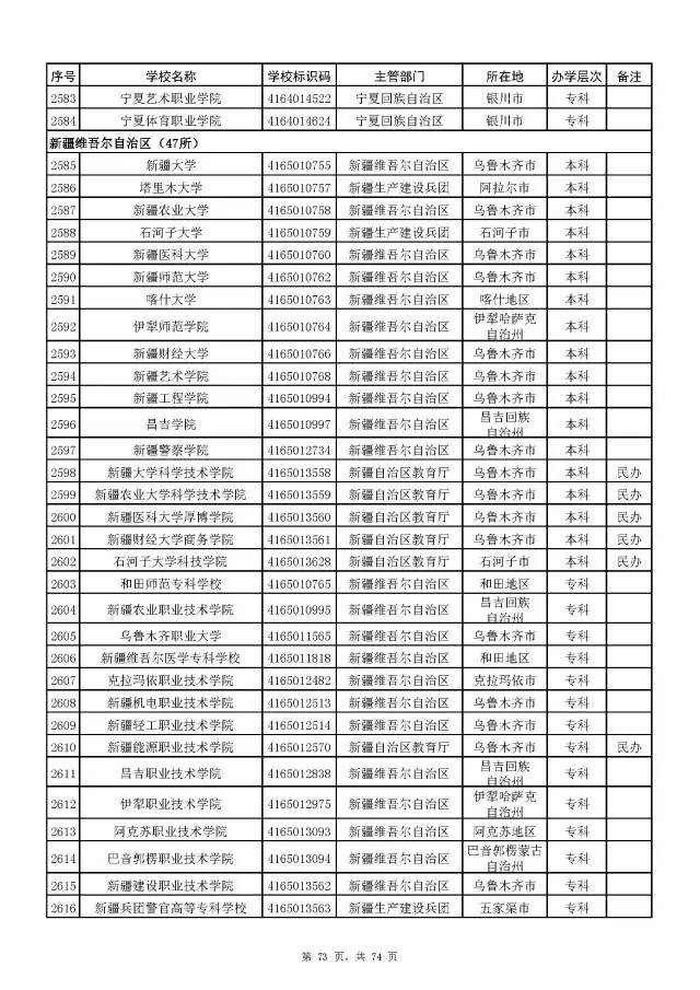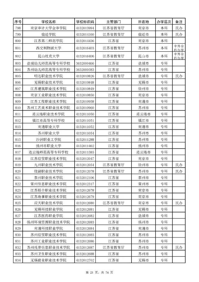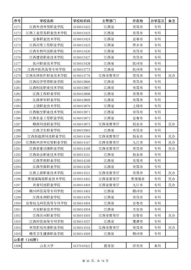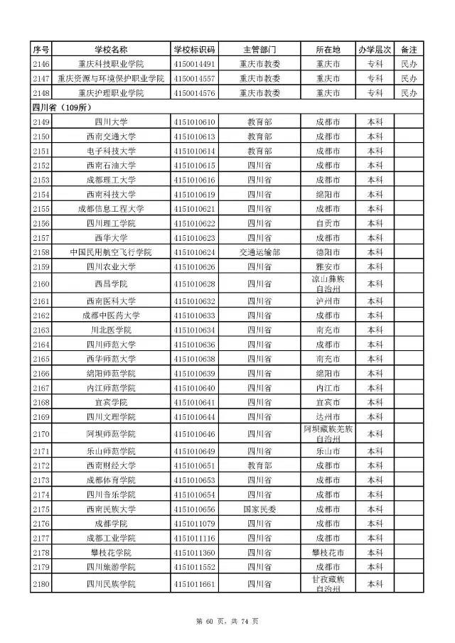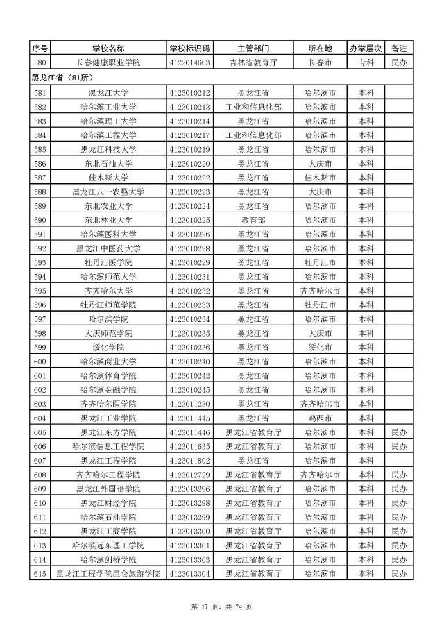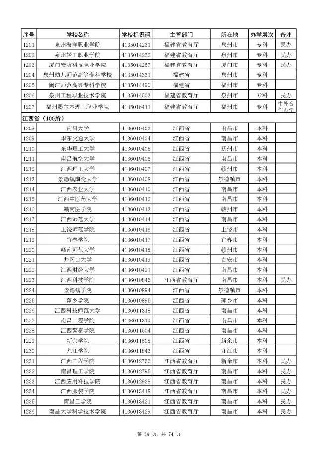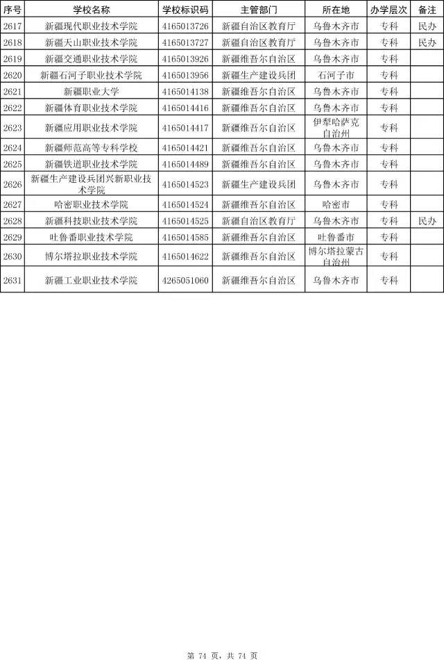 2017全国高校名单公布(2914所截止5月