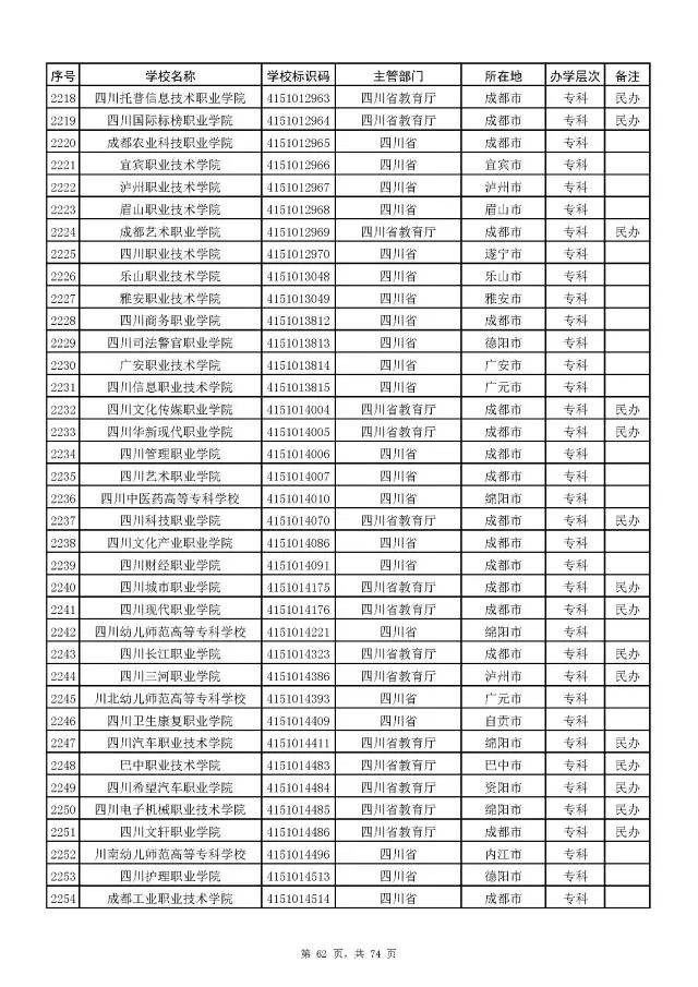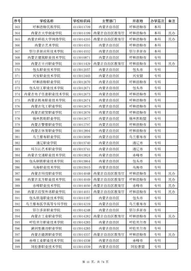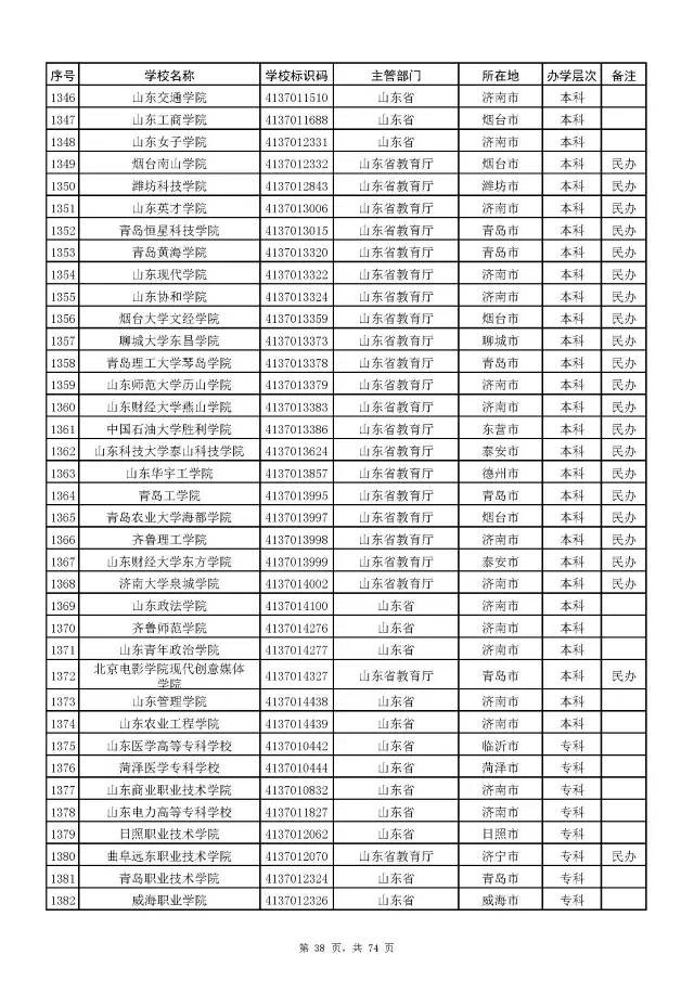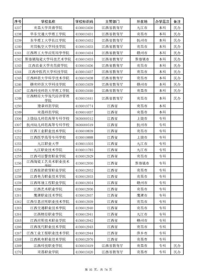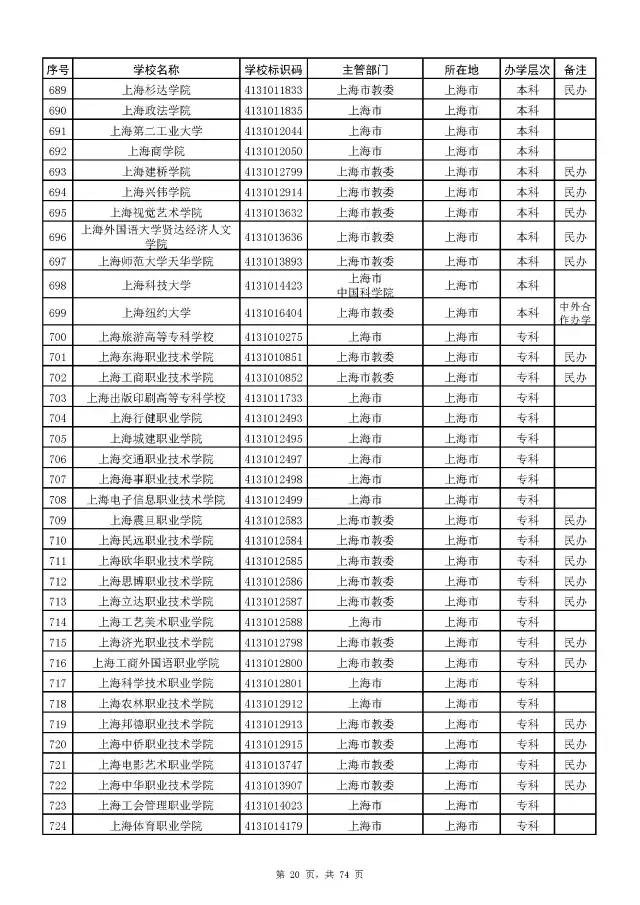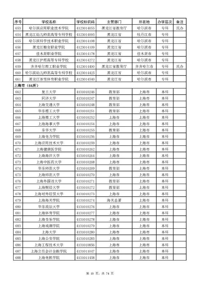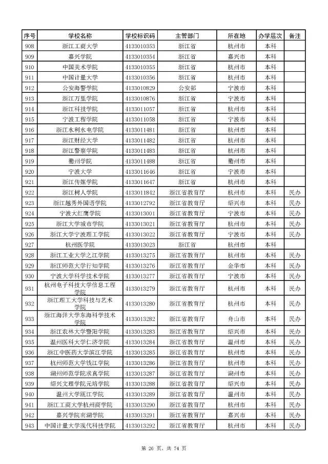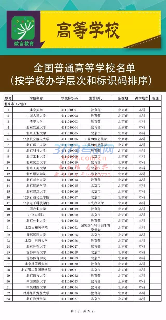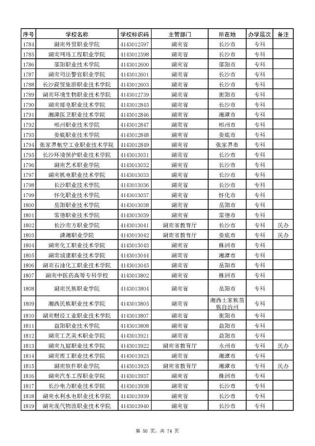 2017全国高校名单公布(2914所截止5月