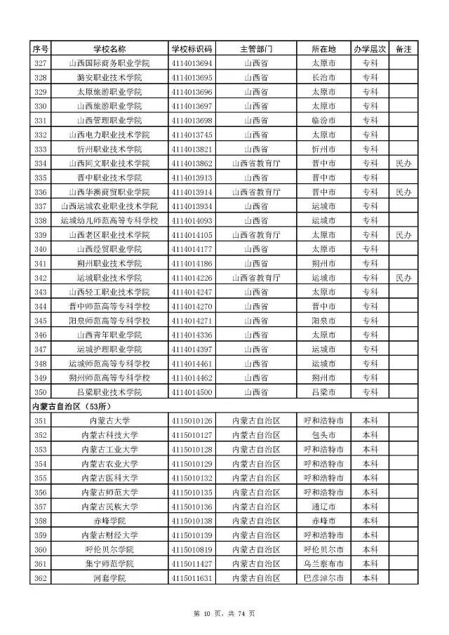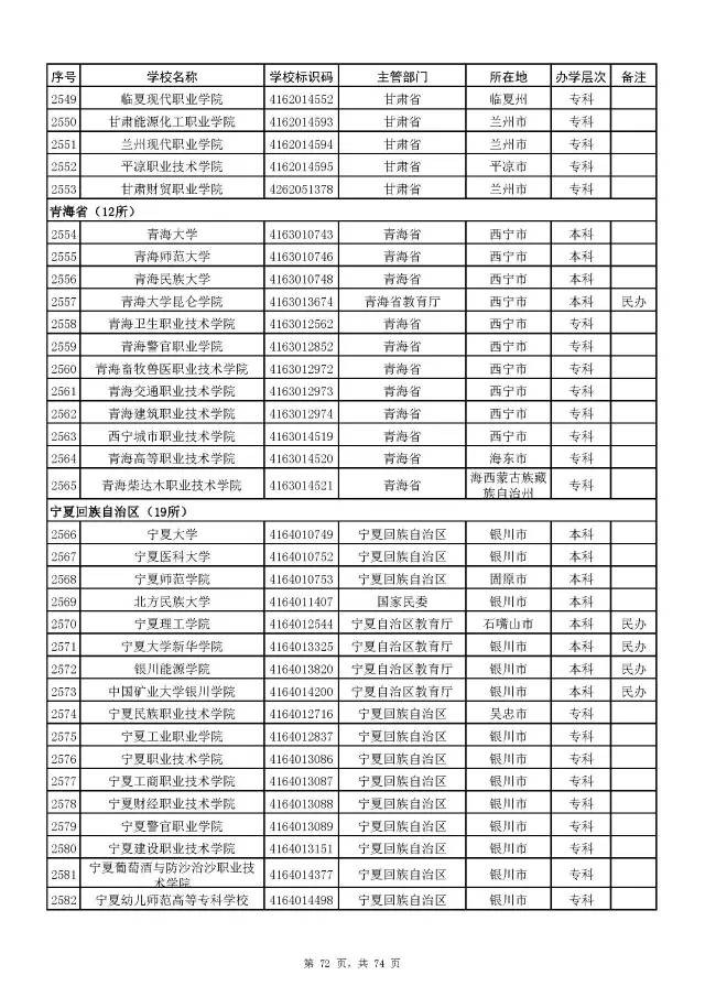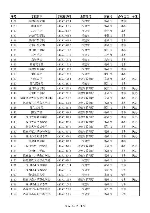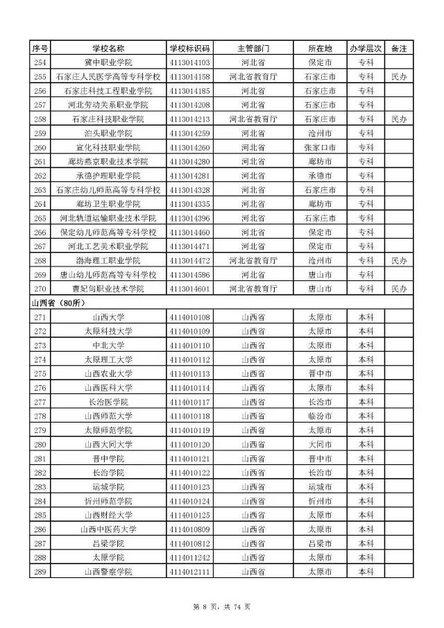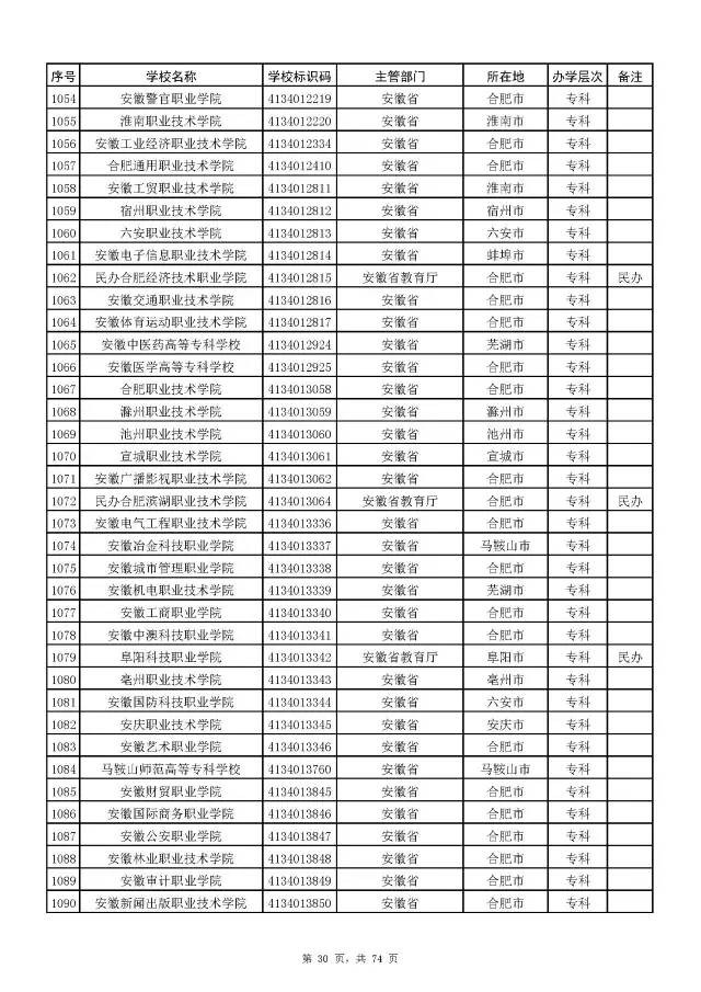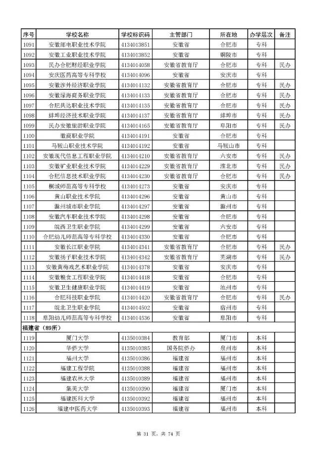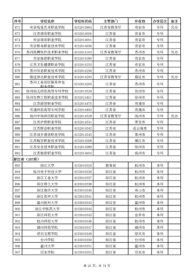 2017全国高校名单公布(2914所截止5月31日)