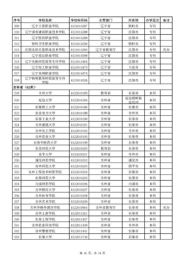 2015全国普通高校名单