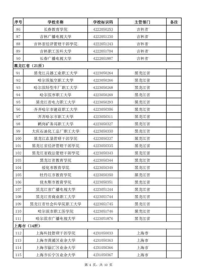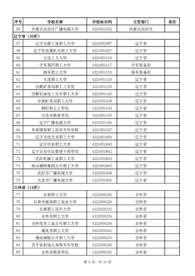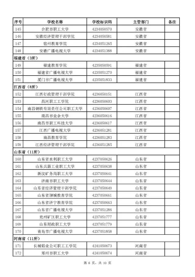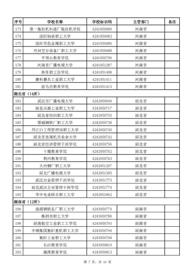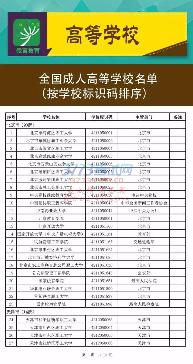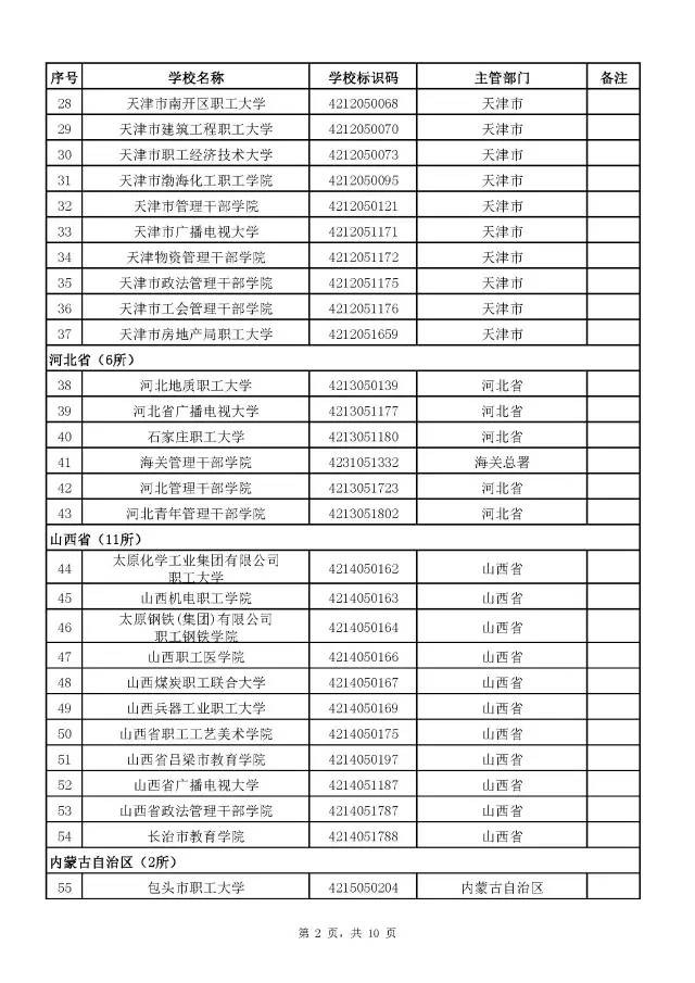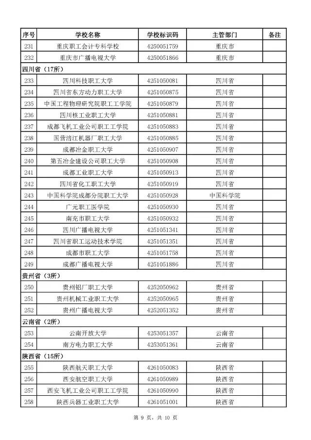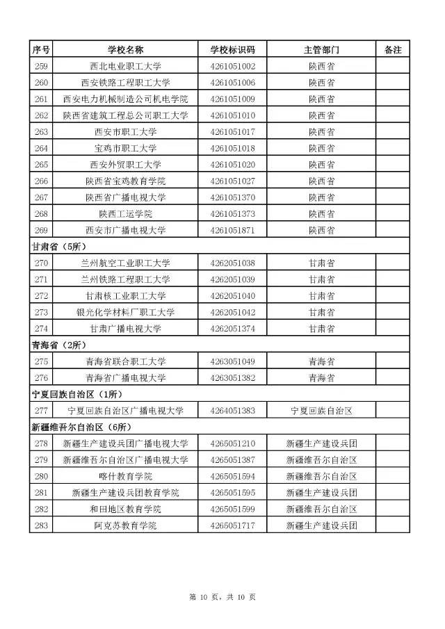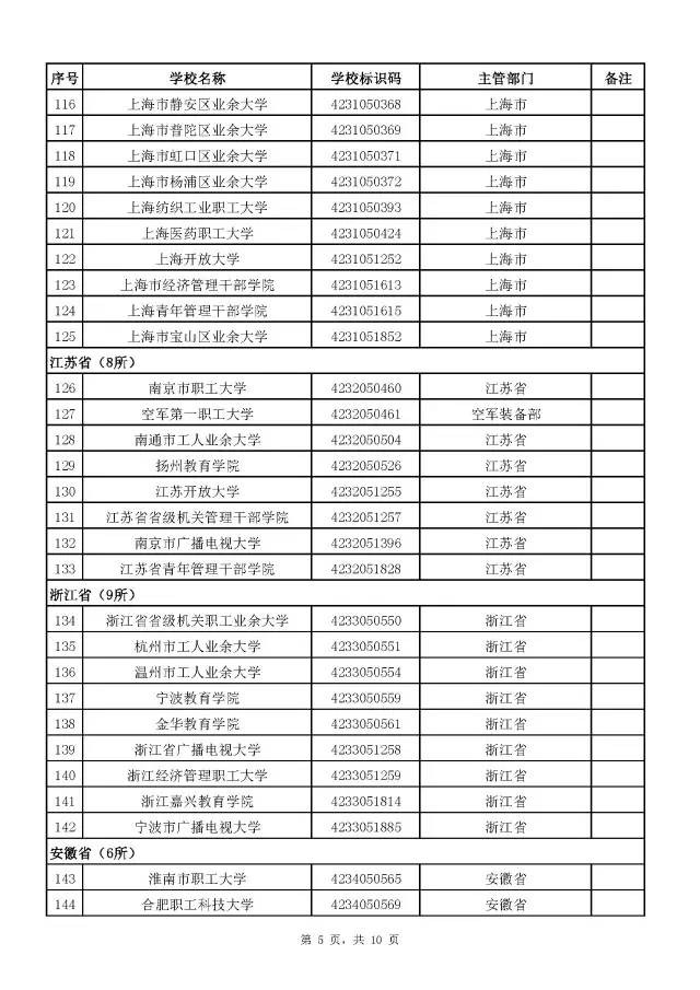 全国成人高校名单(截至2017年5月31日)