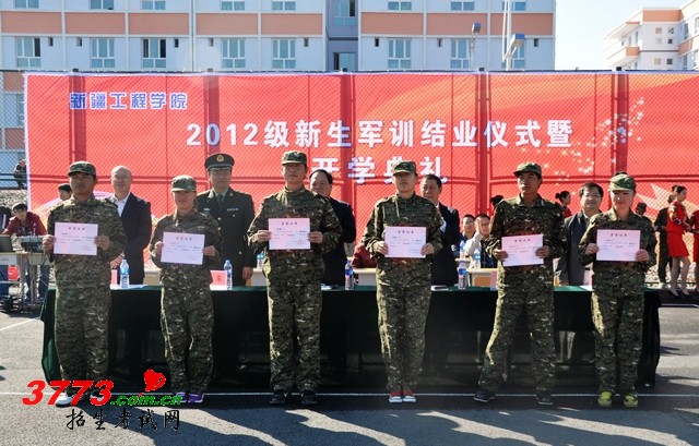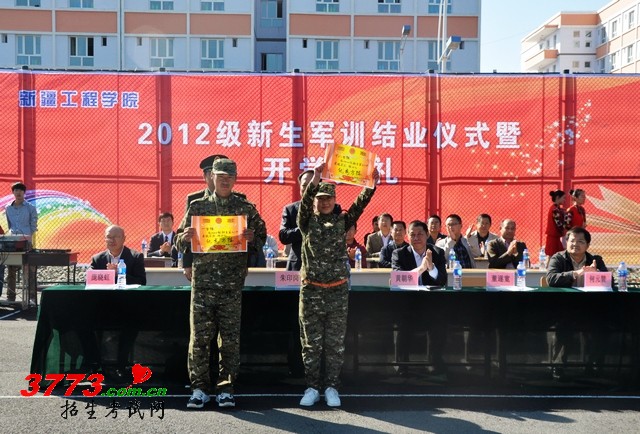 (学生记者唐林)9月23日,新疆工程学院在操场隆重举行2012届新生军训结业典礼。校党委书记朱印岗、校长黄朝华、副校长庞晓虹、中国人民解放军69250部队科长沈东等领导出席典礼,活动由校党委副书记、纪检委书记董遂宽主持。全体大一新生参加了典礼。