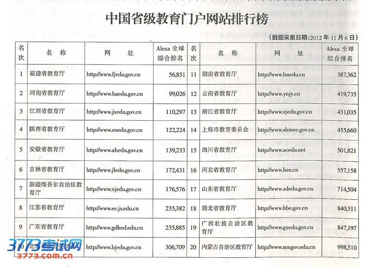 中国省级教育门户网站排行榜中国省级教育门户网站排行榜