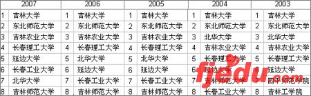 1、吉林大学 2、东北师范大学 3、长春地质大学 4、吉林工业大学 5、白求恩医科大学