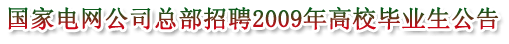 国家电网公司总部招聘2009年高校毕业生公告 |