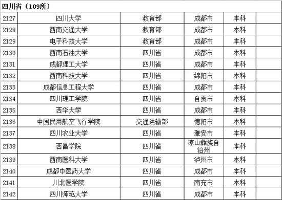 教育部官方网站最新发布2016年全国高等学校名单。截至2016年5月30日,全国高等学校共计2879所,其中:普通高等学校2595所(含独立学院266所),成人高等学校284所。