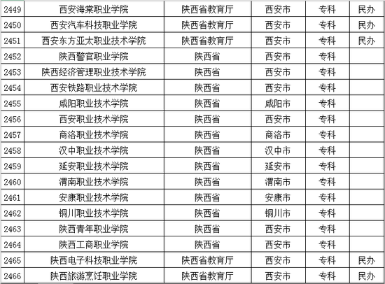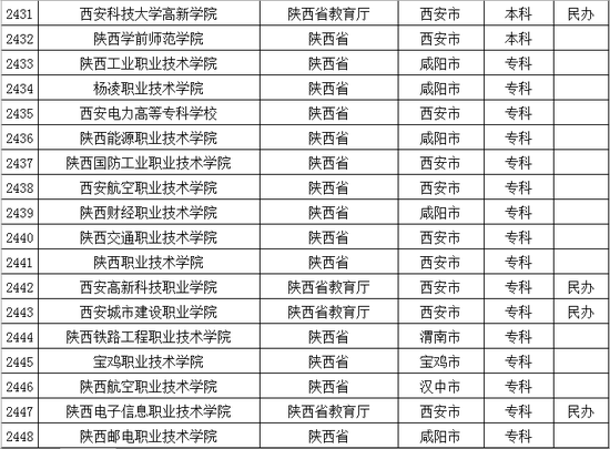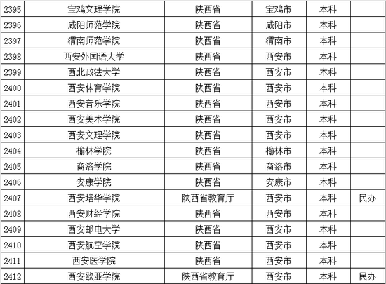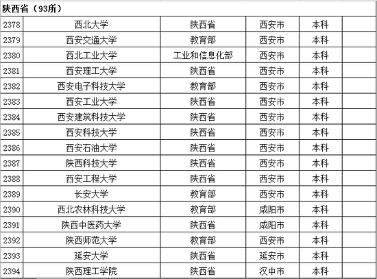 以下是陕西省普通高等学校名单: