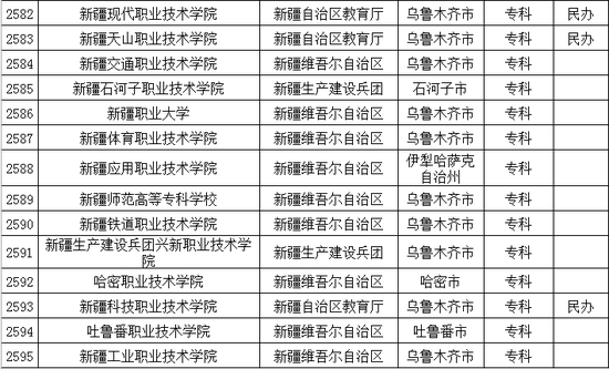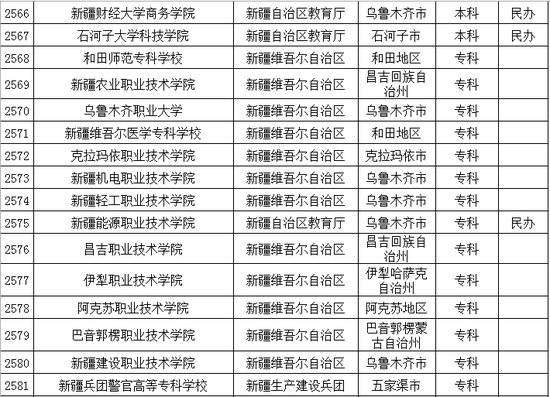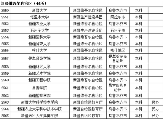 以下是新疆维吾尔自治区普通高等学校名单: