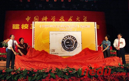随后,王志珍、彭珮云、孙金龙、刘明光共同为中国科大建校五十周年纪念邮票揭幕。