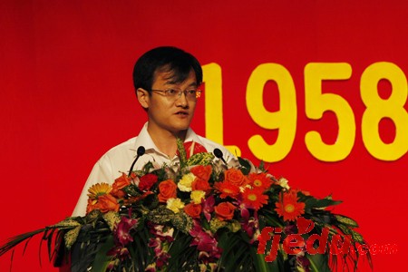 杜江锋教授在发言中代表全体教师向母校50华诞表示热烈的祝贺。他说,我是1985年入校的,在科大学习生活了23年,亲眼目睹了改革开放后科大率先跨出国门、迅速成长壮大的历程。我个人的成长与母校老师的培养、与国家社会的大力支持是分不开的,同时也与科大追求卓越、刻苦拼搏的传统联系在一起。作为科大老师,应该继承老一辈科大人积淀和传承下来的“勤奋学习、红专并进”的传统,为“创寰宇学府、育天下英才”的宏大使命而不断努力,奋发进去。