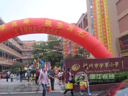 学校简介:杭州市学军小学(杭州师范大学第二附属小学)是有百年历史又具现代气息的浙江省示范性实验小学,建校于1908年,始名杭州府官立初等小学堂。从1992年开始一直被评为浙江省文明单位、浙江省先进学校,1991年被杭州市人民政府外事办公室确定为重点涉外参观单位,1998年被命名为教育部现代教育技术实验学校,2002年被评为全国首届中国少年弘扬白求恩雷锋精神十佳先进集体、浙江省首批绿色学校、浙江省教育科研200强学校,2003年被评为杭州市首批文明学校,2005年被评为浙江省校本教研示范学校、杭州市示范文明单位,2007年被评为浙江省爱国卫生先进单位、浙江省语言文字规范化示范学校,2008年被评为浙江省健康促进学校金奖、杭州市最清洁单位。学校连续多年被评为杭州市人民满意学校,是杭州市国际交流的窗口。