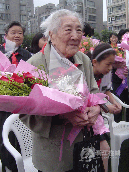 庆典现场,一群花白头发的退休老教师引起了大家的注意。据了解,他们中间有一批教师一辈子扎根于该校,他们当中最大年龄是97岁高龄的钱引彰女士。孩子们给曾在学校工作的教师和退休教师送上了一束鲜花,表达母校对他们的真挚祝福。