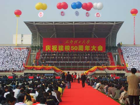 10月28日电(记者杨杰)28日上午,成都理工大学建校50周年庆祝大会在主校区体育场隆重举行,2万多名校友共聚一堂分享这份沉甸甸的喜悦。 庆祝大会由校党委书记冯文广主持,张中伟、孟宪来、杨长利、王少雄、李春城、李洪仁、柯尊平、苟建丽、蒋显伦、王东洲等领导出席庆祝大会。中共四川省委书记张学忠、教育部、劳动与社会保障部、国家自然科学基金委员会、海内外科研院校、全国知名企业、各地校友分会等发来200余封贺信。
