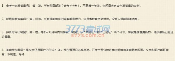 “会考考神猫爸学姐”也在QQ空间透露,“在开考15-30分钟内出答案”。 [保存到相册] |