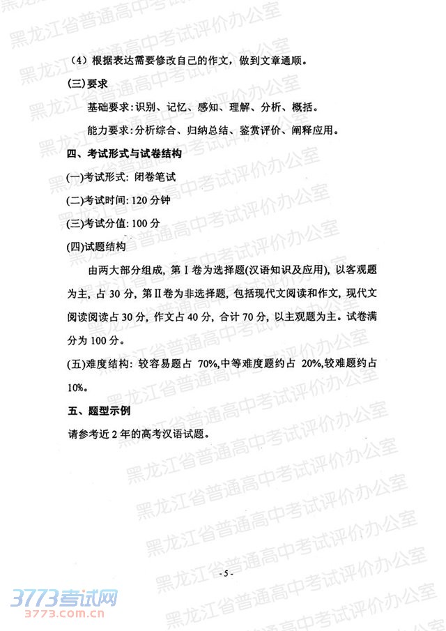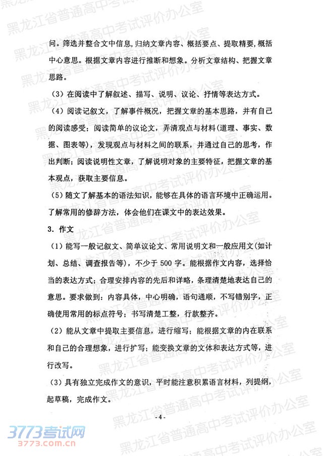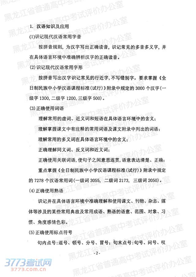 2014黑龙江高中学业水平考试说明大纲(汉语文)