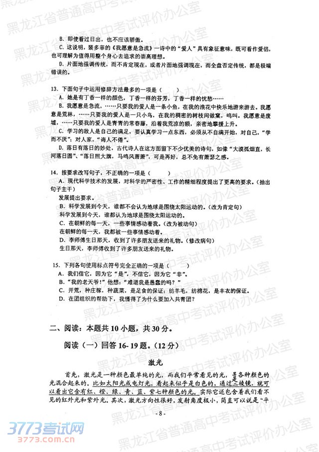 2014黑龙江学业水平考试朝语文考试大纲说明