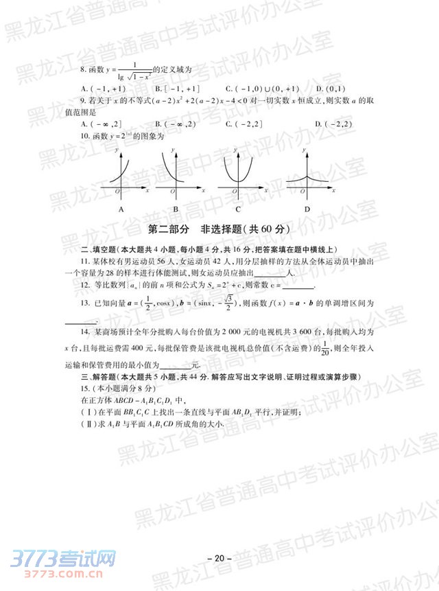 2014黑龙江高中学业水平考试数学说明大