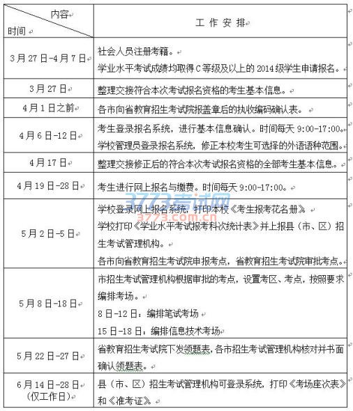2016年12月山东临沂会考时间安排