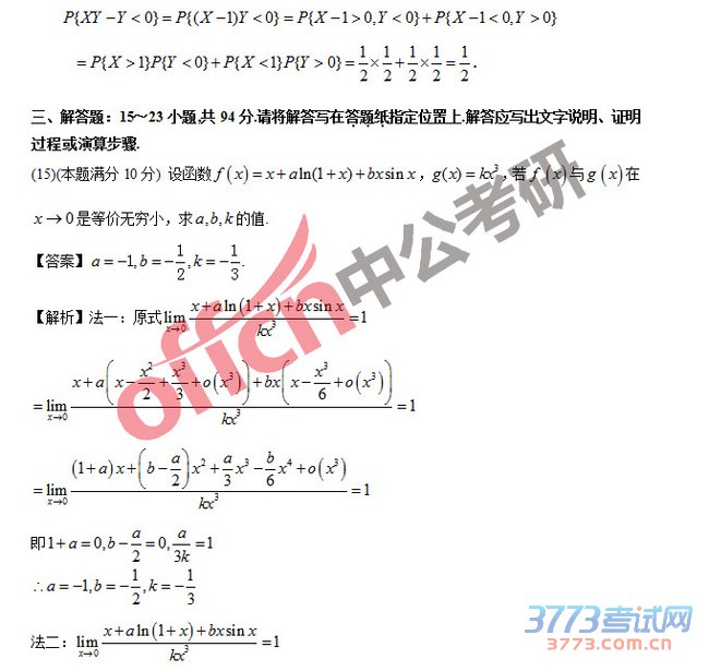 2015考研数学(一)真题答案及解析 2015考研数学一真题及答案解析