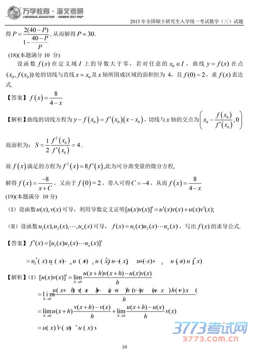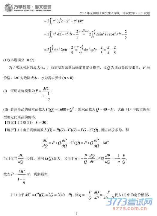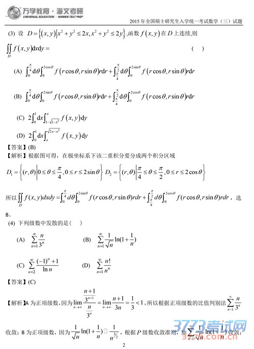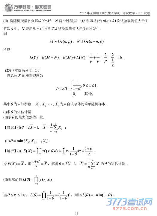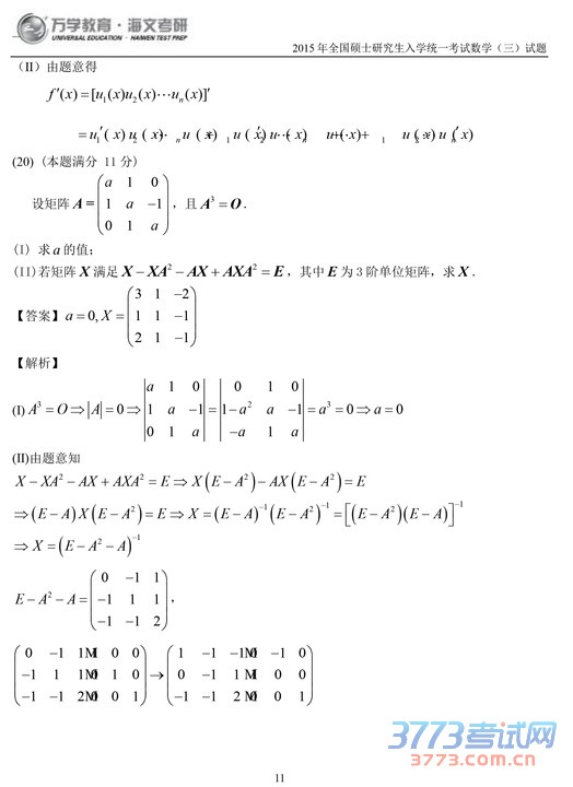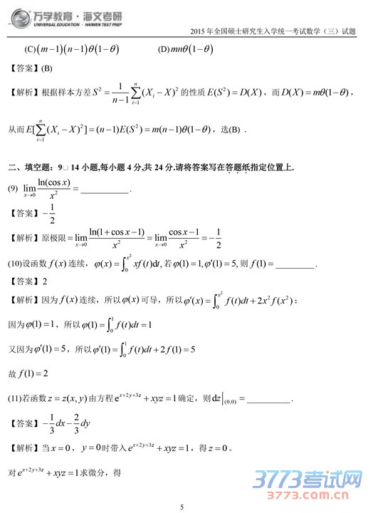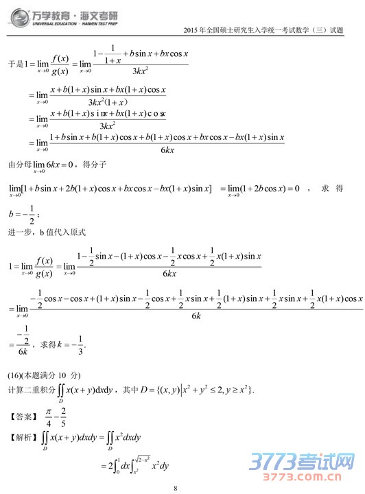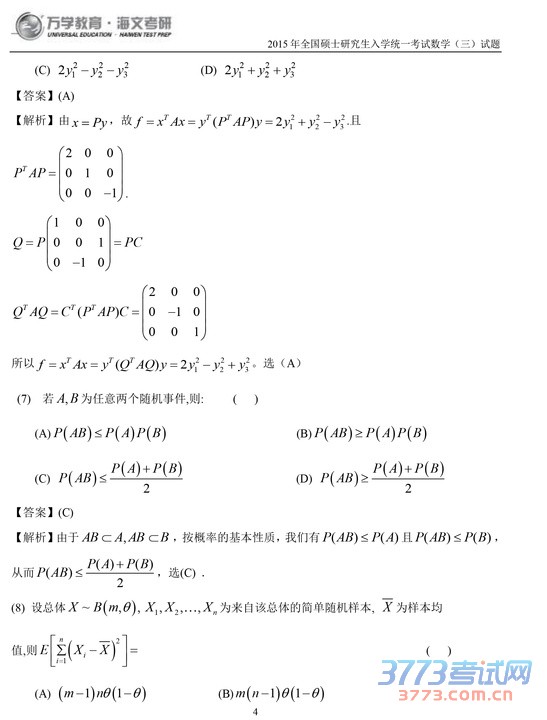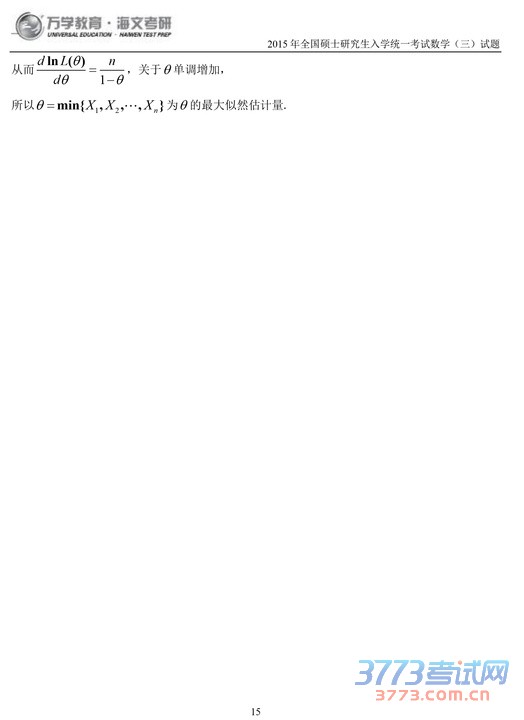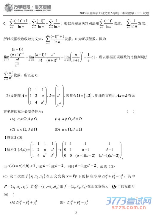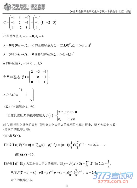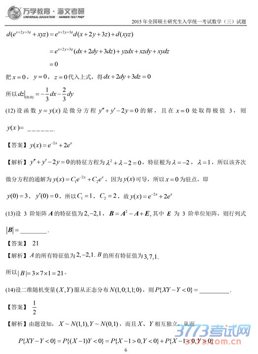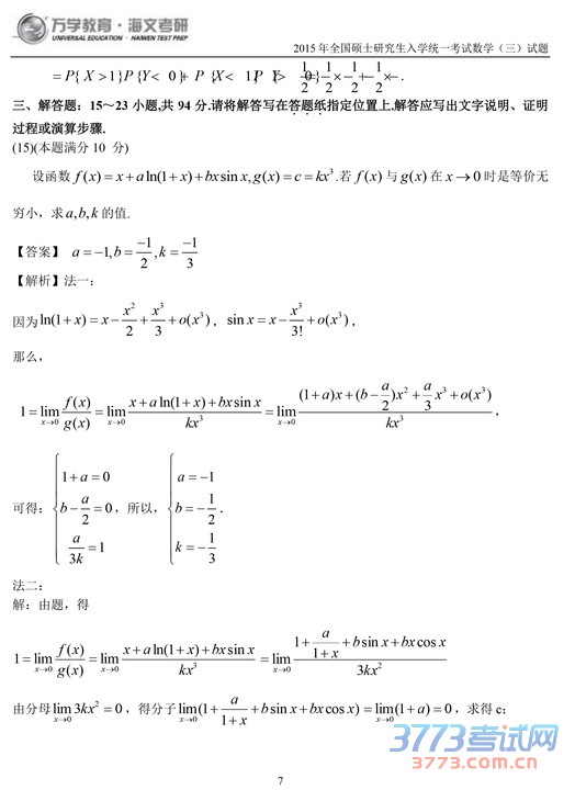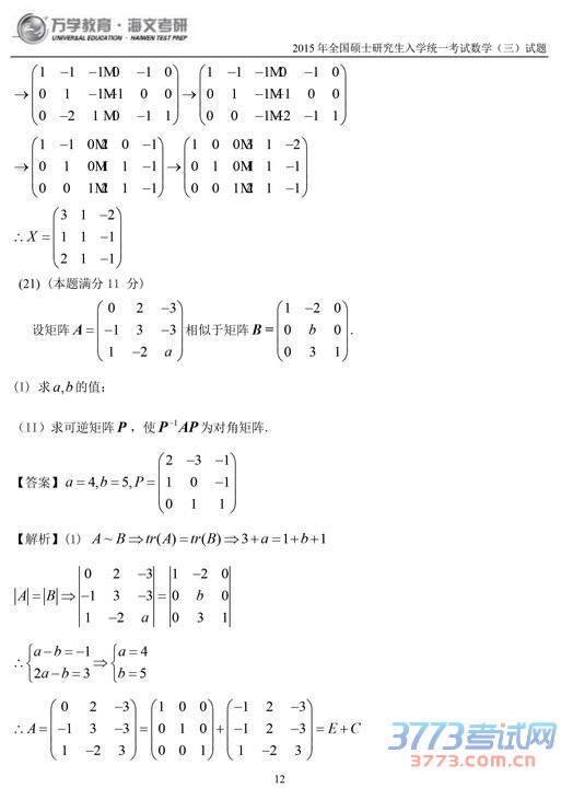 2015考研数学三试题及答案解析