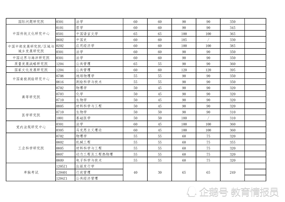 其中信息管理学院的出版学专业,为400分;政治与公共管理学院的行政管理专业同样最高为400分。这两个专业是武汉大学今年所有专业的最高分!