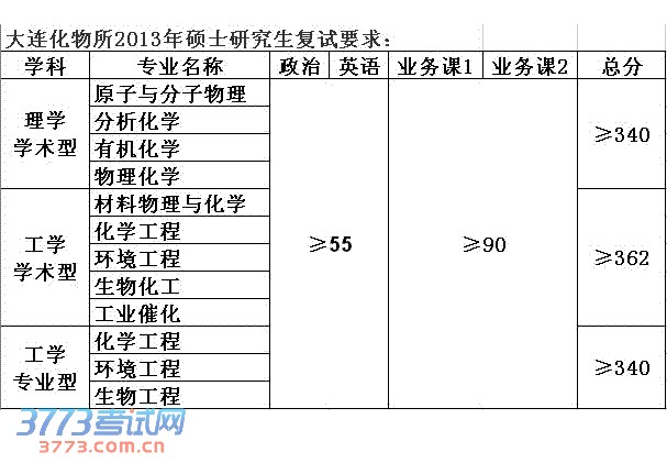 中国科学院大学大连化学物理研究所2013考研复试分数线