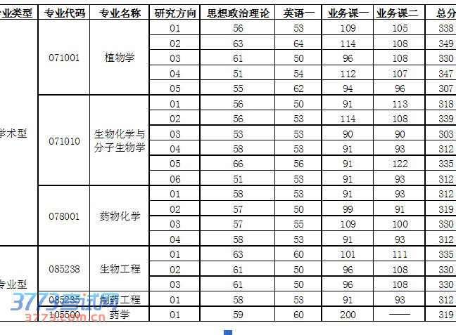 中国科学院大学昆明植物研究所2011-2013考研复试分数线 |