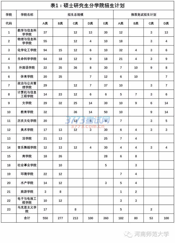 为了分类管理招生计划,我校将研究生招生分为五类,即学术学位(A类)、不包括教育硕士的专业学位(B类)、不包括农村师资教育硕士专项计划(以下简称硕师计划)的教育硕士(C类)、硕师计划(D类)、非全日制专业学位(E类)。