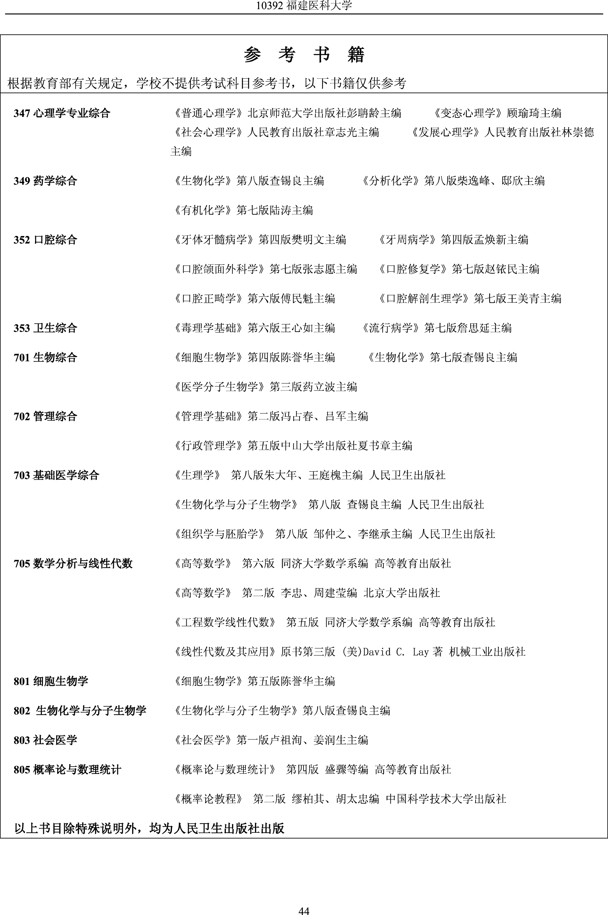 据福建医科大学研究生院消息,2017年福建医科大学考研参考书目及考试科目已公布,详情如下: