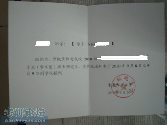 2010年重庆邮电大学硕士研究生初试成绩查询通知