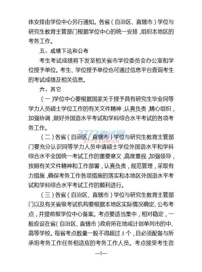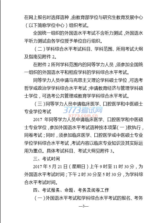 关于做好2017年同等学力人员申请硕士学位外国语水平和学科综合水平全国统一考试工作的通知