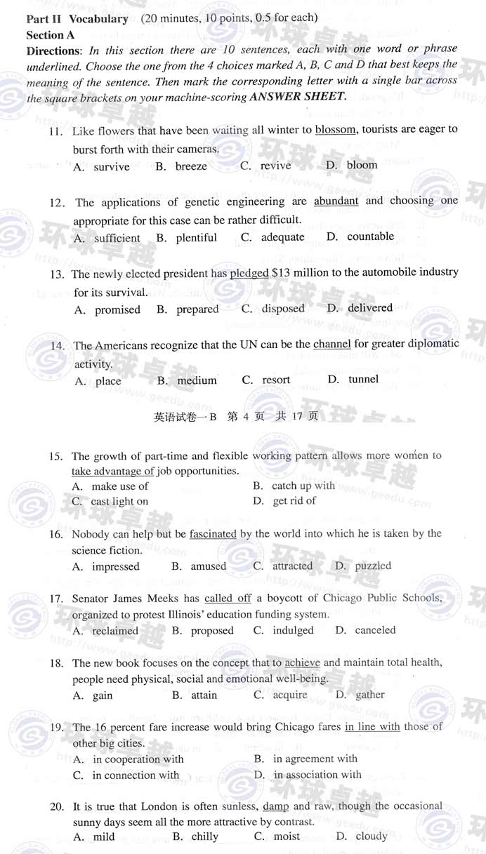 2009年同等学力申硕考试英语试题答案B卷