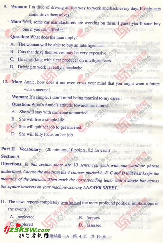 同等学力申硕2011英语真题(A卷)及答