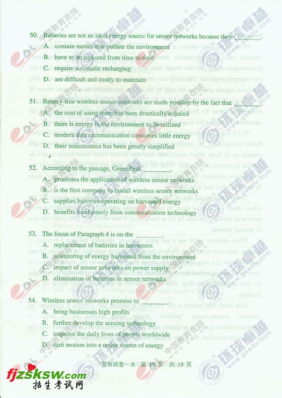 2009年同等学力申硕考试英语试题答案B