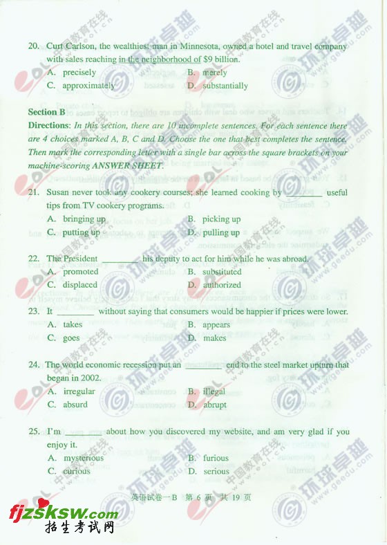 同等学力申硕2011英语真题(B卷)及答
