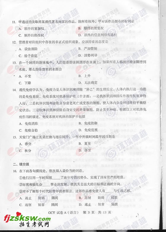 2010年10月GCT在职语言表达A卷真题