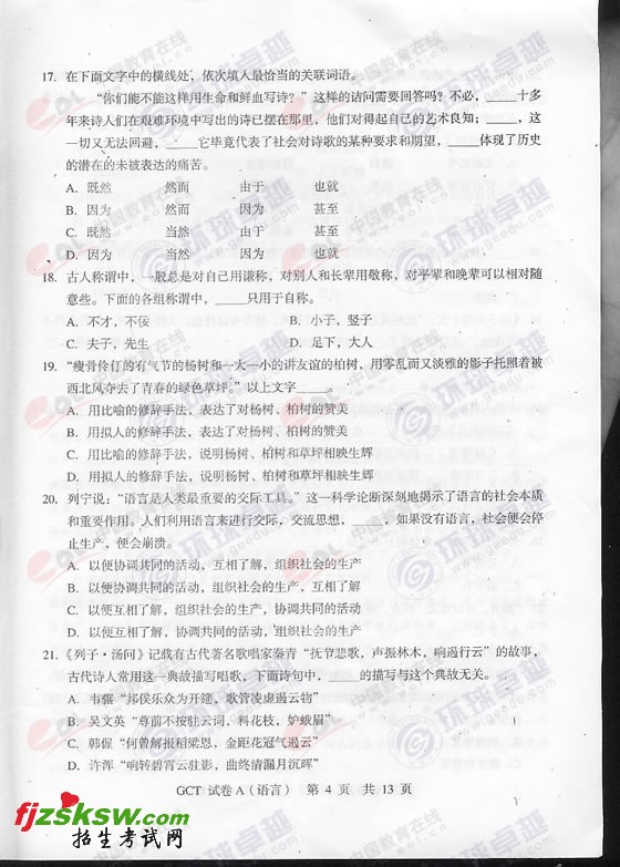 2010年10月GCT在职语言表达A卷真题